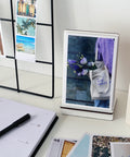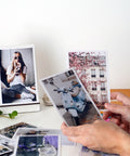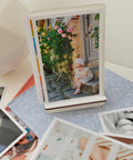 Elegí 20 fotos que te encanten y hacé que vivan fuera del celu: un soporte de madera incluido para rotarlas cuando quieras y tener siempre a mano esa foto que te hace sonreír.